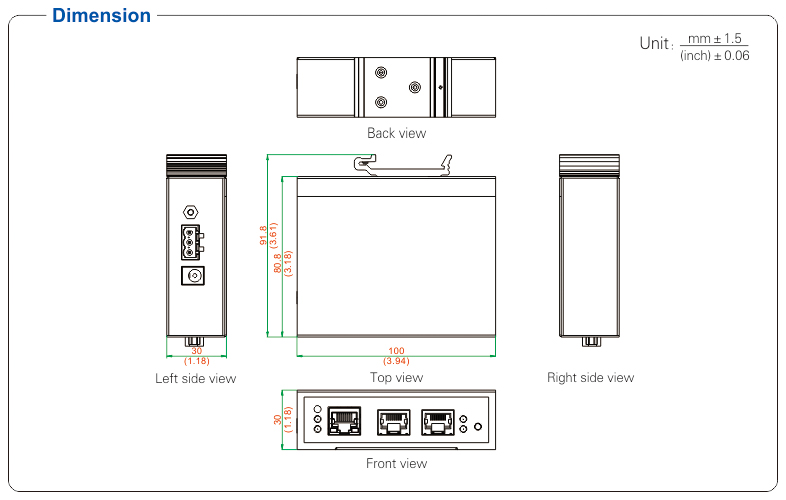 ● Power: 5V, 12-60VDC, with optional POE function, surge 1.2/50us, common mode 2,000V/differential mode 1,000V