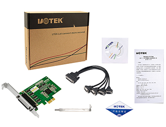 UT-784 is a universal PCI-E serial card designed for POS, ATM and other applications that can be used in industrial automation system manufacturing and system integration. UT-784 provides 4 RS-232 serial ports that can connect to a variety of serial devices such as PC, terminals, modems, printers, scanners, etc. Each port can reach a data rate of 921.6Kbps and provides modem control signals to ensure the compatibility of serial device peripherals.