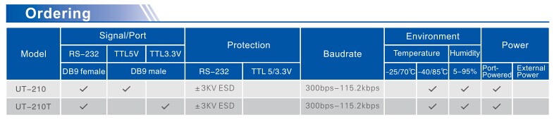 To carry out the digital communication between external devices or intelligent instruments with different standard serial interfaces, standardize the serial conversion is necessary. Rs 232 to TTL converter(UT-210) converts data (TXD, RXD) of RS-232C to TTL/COM; the TTL electrical level is 0-5V, without external power supply. It adopts unique "RS-232 charge pump" technology to drive the system and gains power without initializing the RS-232 serial port.