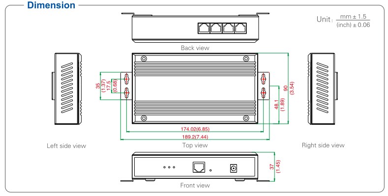 ● Ethernet port 10/100M transmission rate, auto negotiation