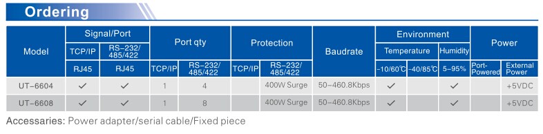 UT-6604 serial device server is a converter that converts asynchronous ports RS-232/422/485 to TCP/IP. It is an independent intelligent device with CPU, embedded OS, and full TCP/IP protocol. The bid-direction transparent transmission between RS-232/422/485 and Ethernet enables RS-232/422/485 serial devices access in Internet immediately.